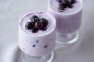 ブルーベリーの酸味とひんやり感が初夏にぴったり。あんずジャムやイチゴジャムなど、好みで変えて作るのもよい。