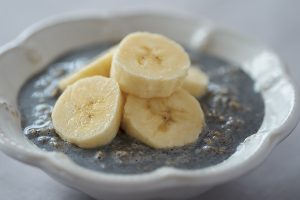 黒ごまとバナナで栄養面をパワーアップ。ねっとり濃厚な練りごまの風味で、食べごたえも満点。寒い時季には温めてから食べても。