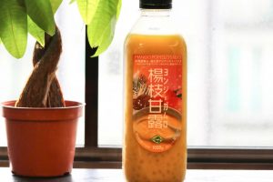 このたび日本でも、このボトル入り楊枝甘露が買えるようになりました。ラベルのデザインは少し違いますが、同じ大きさです。