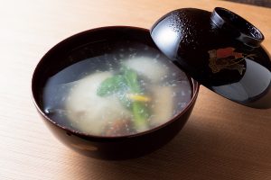 また、ダシに造詣が深く、数種の鰹節の削り節をブレンドして引くダシもあるが、あくまで素材の味や香りを活かした旨味が勝ちすぎない、奥ゆかしい味。一寸豆の土鍋ごはんも、野菜の味を大切にしたいからと、昆布と塩だけで炊いている。