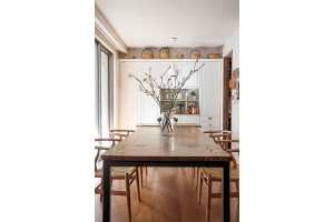 植松良枝さんの自宅兼料理教室のダイニングルームには、長さ約3mの天然木のテーブルが鎮座している。