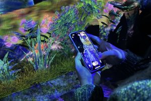 まずはこの美しい森をぐるっと眺めて、どんな動物がいるかをチェック。そして、自分のスマートフォンにダウンロードした専用アプリを使って動物のコレクションに挑戦。