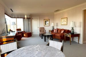 60平米の「プライムエグゼクティブスイート」には広々としたリビングルームが。1泊2名 142,945円~(消費税・サービス料込、宿泊税別)