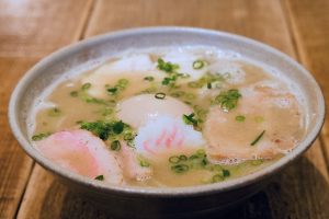 「シン蕎麦店」というコンセプトを掲げ、ラーメンと蕎麦をかけ合わせたモダンなメニューが並ぶのも特徴です。ボーンブロス(骨を煮込んでとる出汁)がベースの「塩生姜おかめ蕎麦」や、鶏白湯に煮干しのうま味を重ねた「鶏煮干し蕎麦」など、しっかりとした味わいながら、栄養がギュッと閉じ込められた滋養の一杯が味わえます。