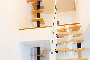 猫は高いところに移動したり、上から見下ろしたりするのが大好き。廣瀬さんの家も、ロフトやキャットツリー、階段など、高低差のある設備が意識的に配置されている。