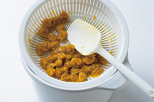 2. 沸騰した湯で果肉を20分茹で、水気を切り、粗めの漉し器でこす。
