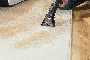 さっそく気になっていたカーペットに試すと「パワーがありますね。きれいにしたい箇所に洗浄水を確実に吹きつけられるし、汚れを吸引する力が強いからカーペットの色が一段明るくなった気が。シミも薄くなりますね」。