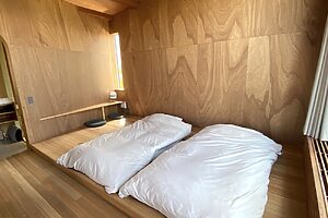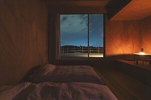 1日1組限定で、「song」に宿泊も可能。満天の星空を見てほしい、という思いから、照明は最小限に抑えられています。灯りを落とすと、夜空に瞬く星々がくっきりと浮かび上がり、自然と一体になるような静けさに包まれます。