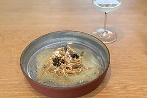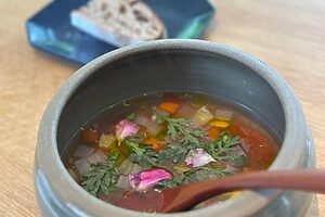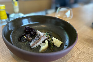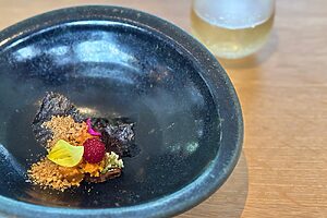 料理にはクルックフィールズで収穫した野菜をはじめ、近隣の森で捕獲されたジビエや千葉の漁港で水揚げされた魚など地元の食材が使用されています。時には農園のスタッフから旬の木の実や食用花が持ち込まれ、その場でメニューをアレンジすることもあるのだとか。