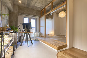 叔母が1人で住む住居に姪夫婦が引っ越し、2世帯にリノベーション。建て替えも検討する中で、幼い頃からよく知る愛着のある家を残していきたいという思いから、住みやすくする選択をしたそう。叔母が住むフロアは和モダンなナチュラルテイストにして、親戚などが集い遊べる場に。姪夫婦のフロアはブルックリンスタイルの開放的な間取りになりました。