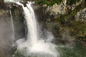 シアトル中心部から車で約40分。カスケード山脈のスノコルミー渓谷にある《スノコルミー滝(Snoqualmie Falls)》は、人気テレビ番組“ツインピークス”のオープニングに登場したことで世界的に有名になった滝。毎年150万人以上の観光客が訪れる、ワシントン州随一の景勝地です。滝の一番上にある展望台からは、268フィート(約82m)の高さから轟音を立て落ちる滝の雄大な姿が至近距離で見ることができ迫力満点。霧に漂う水飛沫が心地よく、いつまでも眺めていたくなる景観です。