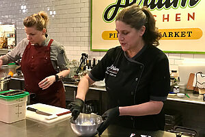 《パイク・プレイス・マーケット》に行ったらぜひ体験して欲しいのが、マーケットの中心部にある《アトリウム・キッチン・アット・パイク・プレイス・マーケット(Atrium kitchen at Pike Place Market)》。ここは、シェフのトレイシー・カルデロンさんが所有・運営する料理教室です。