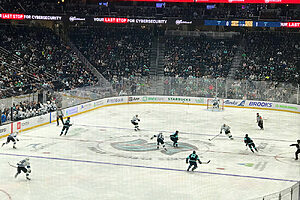 シアトルは、野球のシアトル・マリナーズをはじめ、サッカー、バスケット、アメリカンフットボールなど、ここに本拠地を置くチームがたくさんあり、各チームに熱心なサポーターが多いことで知られています。その中で最近盛り上がっているのが、2021年にナショナルホッケーリーグ(NHL)に加わった“シアトル・クラーケン”。クライメット・プレッジ・アリーナを本拠地とする、地元のプロアイスホッケーチームです。