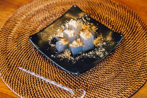 3. 水で濡らした型に流し入れ冷まし固まったら切り分ける。きな粉+ 黒蜜や辛子+酢醤油などお好みで。