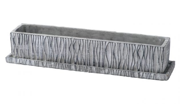 珍しいゼブラ模様のスリムな鉢。セラミック製で重厚感がある。本体 幅40×奥行8×高さ7cm、受皿 幅43×奥行10×高さ1.8cm。ゼブラポットレクタンブル〈受皿付き〉 2,300円(ガーデニング日和)