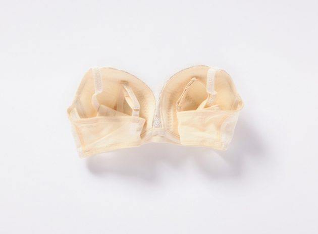 (1)裏返しにしてホックや肩ひもを左右のカップの内側にしまう。
