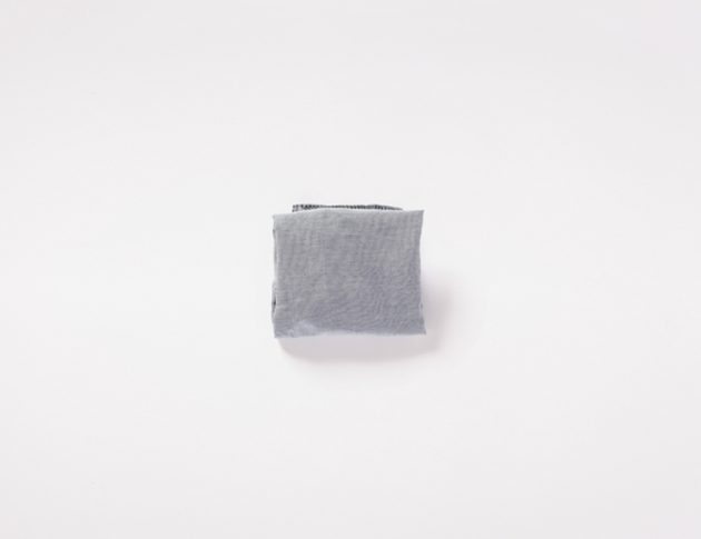 (1)前面を表にして、縦に3つ折りにする。中央の開きの部分がかさばるので2つ折りではなく、3つ折りがよい。