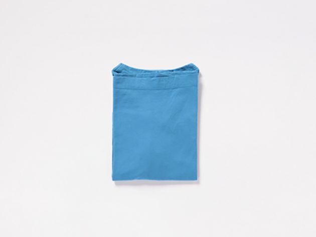 (3)裾から半分に折り畳む。長袖の場合は3つ折りよりも2つ折りのほうが、袖に折り目やしわがつきにくい。