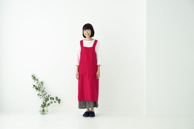 ちょうどいい、そしてやりすぎないデザインのエプロン。ストンと体に沿うように落ちるシルエットは凛々しくて、男性にも似合いそうです。私のデイリーアイテムに仲間入りしたこのエプロンは、気の利いたプレゼントとしても今後活躍してくれそうな予感がします。(ライター Mikiko)