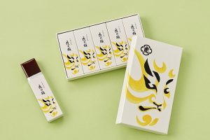 またとらやを代表する小倉羊羹〈夜の梅〉に、“虎の隈取(くまどり)”を描いた限定パッケージも販売。京都に立ち寄った際は、ぜひ訪れて。