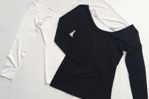 ネットで見ると確かに広い大きな襟ぐり。欲しかったのはこれよこれ、と、いきなり、オフホワイトとブラック、2枚買ってしまいました(笑)。