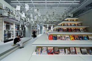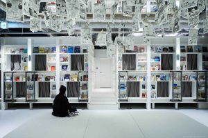 白い本棚のピラミッド!  ⒸBOOK AND BED TOKYO 2018
