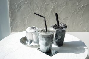 ブラックラテ、ブラックコーヒーゼリーミルクなど黒を基調としたレギュラーメニューに、京都・裏寺町のサワー専門店『sour』と共同開発した、フレッシュフルーツを贅沢に使ったブラックフルーツサンドなど、心斎橋店限定のフードも用意する。