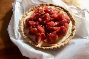 「ビジンサマレシピ」で作る、長芋クリームと季節のジャムのタルト。