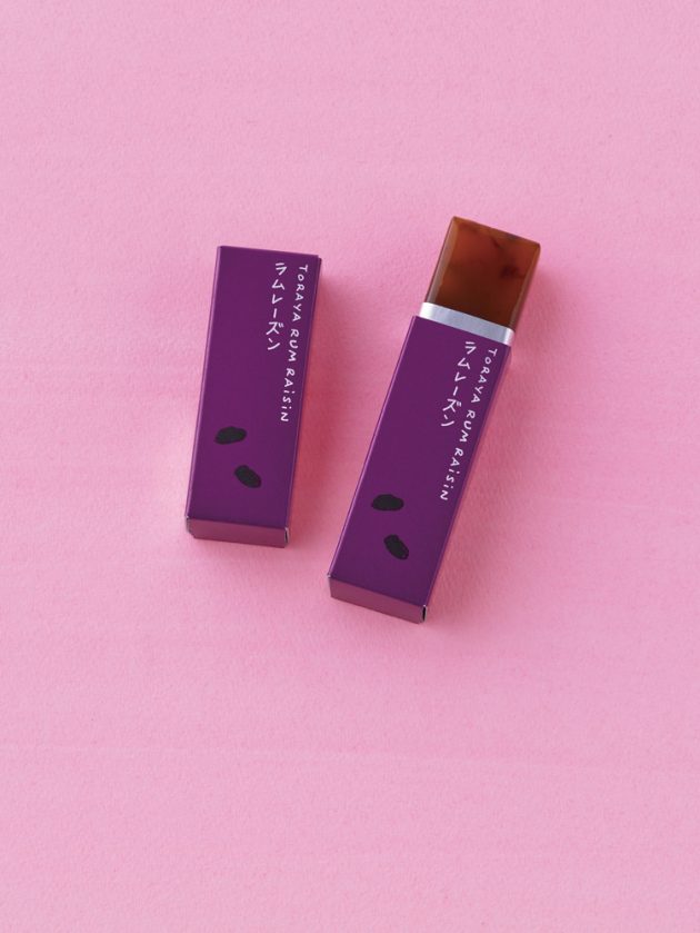小形羊羹『ラムレーズン』(1本260円)香り豊かなラムレーズンを刻み入れた羊羹。ラムレーズンをあわせたことによる独特の風味を楽しめる。※アルコール濃度 1パーセント未満 ※販売期間:販売中~2月中旬。販売店舗:全店