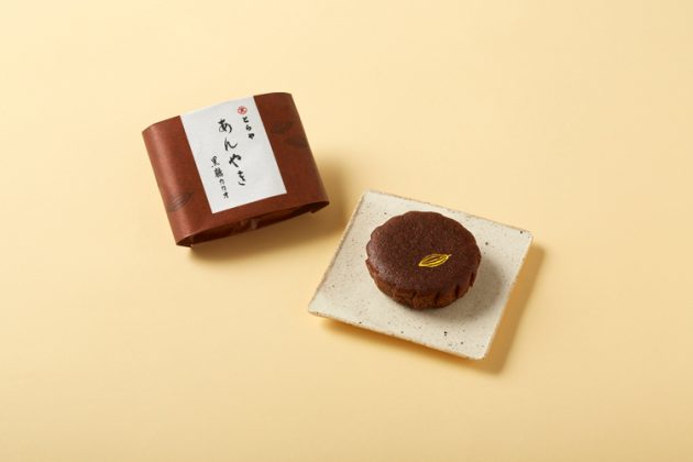 『あんやき 黒糖カカオ』(1個238円)白餡に卵黄とふくらし粉を混ぜ、カカオと黒砂糖をあわせて焼きあげている。白餡のおいしさにカカオの香りと黒砂糖のコクが加わった、風味豊かなお菓子。※販売期間:1月23日~2月中旬。販売店舗:全店