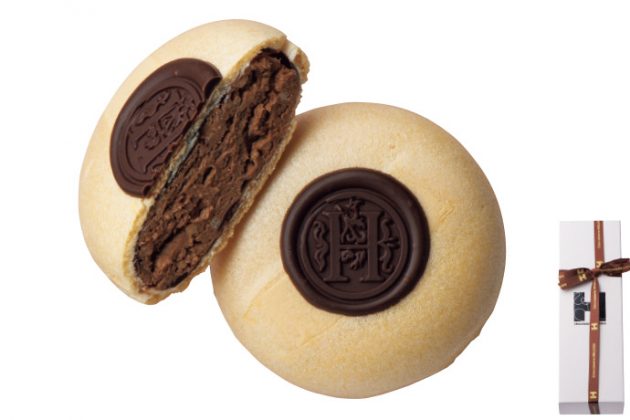 『クラブハリエ』出身の小野林範さんにより今年京都・東山にオープン。3種類のチョコレートとヘーゼルナッツクリームをブレンドし、焼き直して内側にチョコを塗ったパリパリの最中でサンド。家紋風のデザインも粋だ。