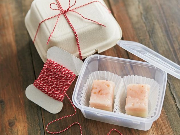 ういろうは、くっつきやすく潰れやすいので、マフィンカップで仕切る。取り分けやすく、手も汚れない。紙製のフードパックやプラスティックケースなどに適量を入れて、カラー紐で結べば立派なお土産に。惣菜を購入した際の容器を活用するという手もある。