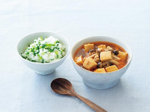 【高野豆腐ときのこの麻婆スープ+かぶの葉ごはんのレシピ】ワタナベマキさんのがんばらない料理。