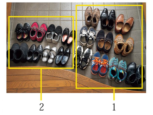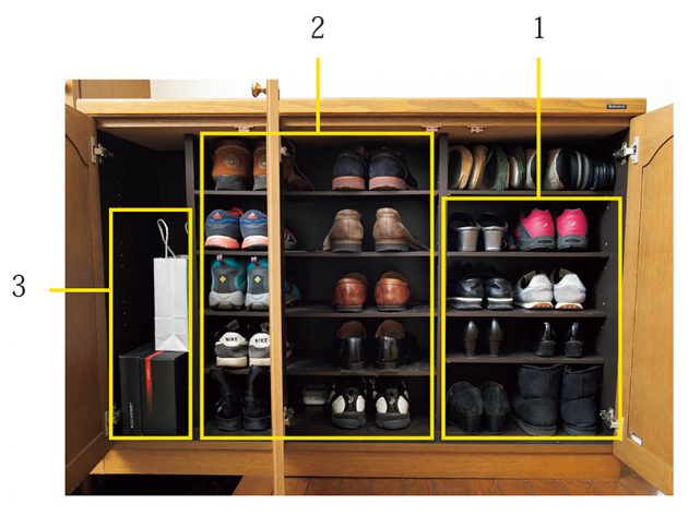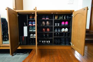 夫と自分の靴が混ざると数を把握しづらいため、分けて収める。