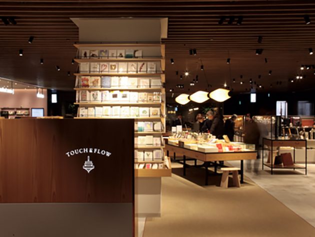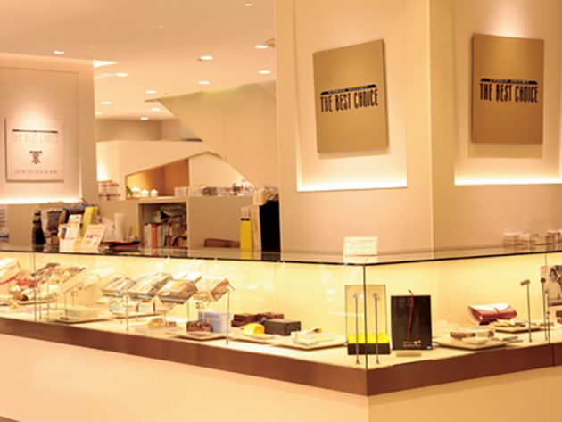 店の中央には、筆記具の試し書きができる広いコーナーが。「書くことで見つける上質な暮らし」がコンセプトの店には、万年筆やペン、ノートはもちろん、革小物、日用雑貨までが幅広く揃う。店内の数カ所には座って休める椅子も置かれ、ゆっくり過ごせる配慮がうれしい。企画展を開催するギャラリースペースもあり、いつ訪れても新しい発見がありそう。