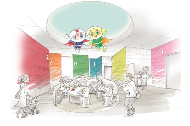 誰もが快適にすごせるよう、トイレやオムツ替え、離乳食スペースなどを1か所にあつめた「ファミリーステーション」を施設中央に配置した。