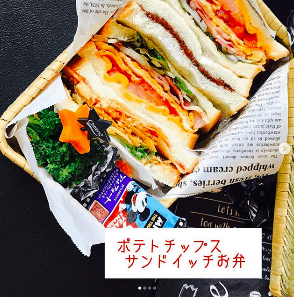 中学生の息子さんの弁当を作っている@dmama425 さん。なんとポテトチップを砕いて具材にしたサンドイッチ。ジャンクな味と歯ごたえがクセになりそうですね! ベーコンレタスチーズサンド、ヌテラサンドイッチ、ブロッコリーソテーと栄養にも気を配ったラインナップもさすがです。