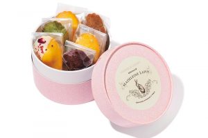 マドレーヌラパン●東京都目黒区自由が丘2-9-15 宮崎第二ビル1F  TEL.03-5726-9795 営業時間:11時~19時30分、年末年始休。ほか新宿、二子玉川に店舗あり。6個入り詰め合わせは1,620円。いろいろな味のマドレーヌを詰め合わせたギフトボックスで、ちょっとした手みやげに最適。特定のフレーバーからも選べる。