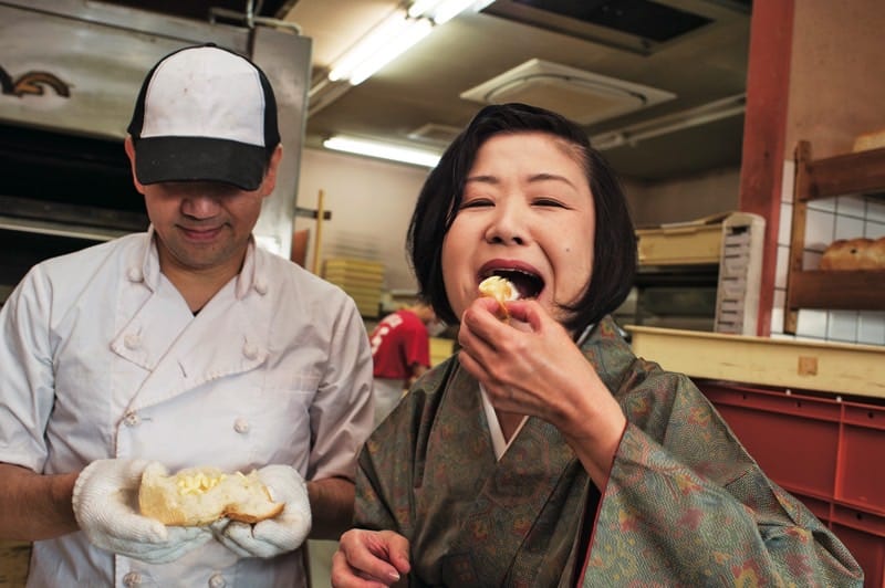 焼きたてのアンファンを頬張る山口さん。「なんという贅沢! 焼きたてのこのパンは人生最高のパンですね」