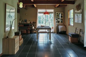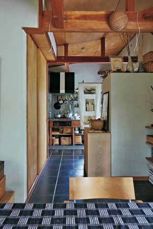 140坪の土地に建てた、15・5坪の一人暮らし用の平屋は、小前さんが自ら設計した。こだわったのは、壁や床に自然素材を使うことと、できるだけコストを抑えること。自ら探し出した床材は、泥に藁を混ぜて蒸したもの壁は漆喰に砂と紙を混ぜたものだ。両方とも調湿性が高い素材なので、「この家に帰ると、空気がさらっとしているのを感じます」