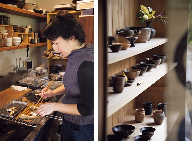 子どもとピアノを連弾したり家事をこなしたり。生活者である視点や発見が、常に器づくりの上に注がれている。好きな黒唐津の色そのままに、強さと深さを秘めている女性である。