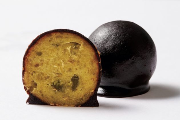 薄緑色のうぐいすあんを、コクのある黒糖羊羹ですっぽりと包んだ。4cmほどの小さめサイズが愛らしい。昭和4年の発売以来、山梨銘菓として定番に。4個入り 550円。取り寄せ可。