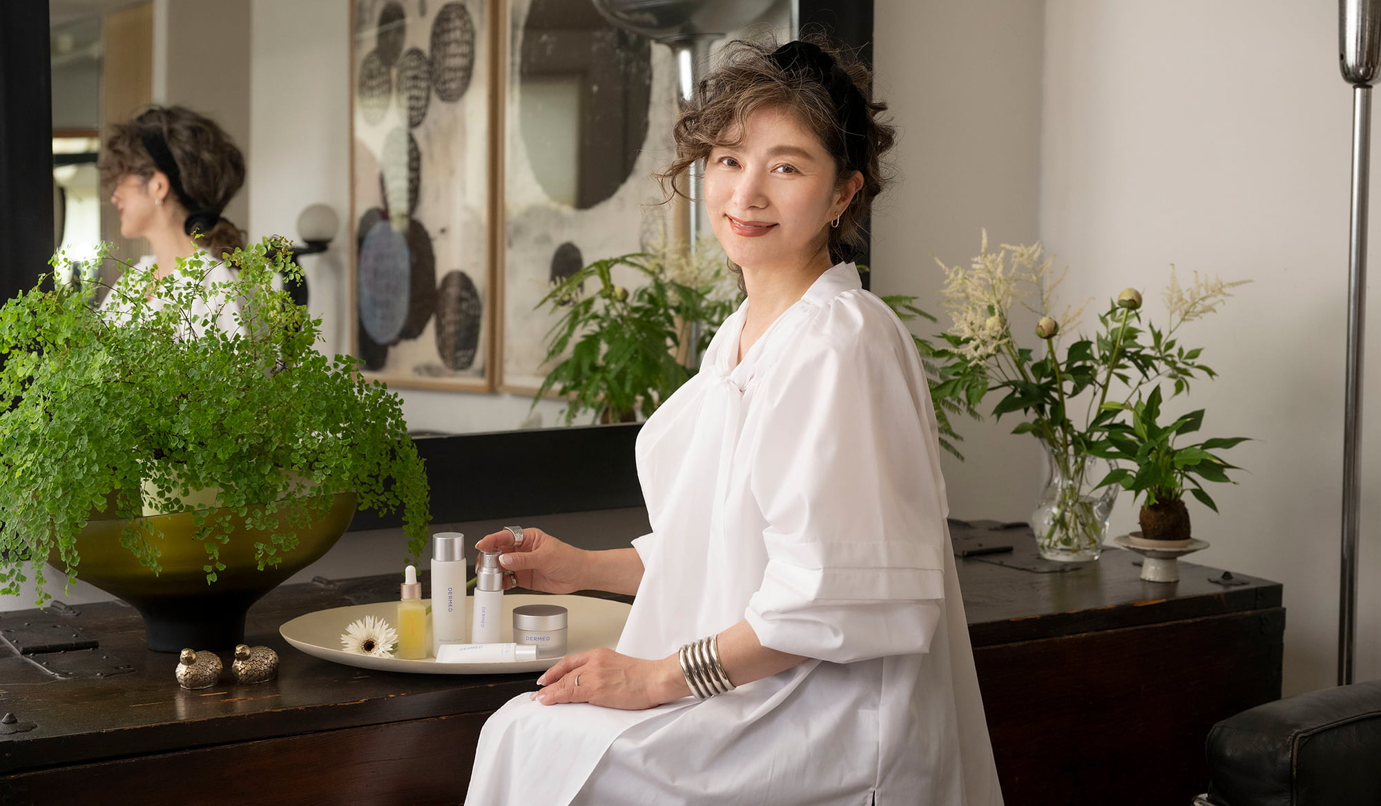 「お手入れ、という言葉が好きです」と語るのは、トータルビューティークリエイターの美木ちがやさんです。「ゆっくり時間をかけて肌をいたわることが、年々、大切になってきました」。59歳という年齢を感じさせないちがやさん、若々しいメイクや着こなしが今、大きな注目を集めています。その秘訣のひとつが、〈DERMED(デルメッド)〉のスキンケアでした。「肌がきれいだと自信が生まれる。堂々としていられる。生きる力なんです。それは小さな積み重ねでしか生まれません。だからこそ、効果のあるスキンケアを伴走者に選びます」。130種類以上のオリジナルの美容成分を開発した三省製薬だからこそ実現できたブランド〈デルメッド〉。その愛すべき魅力を、ちがやさんにお聞きしました。